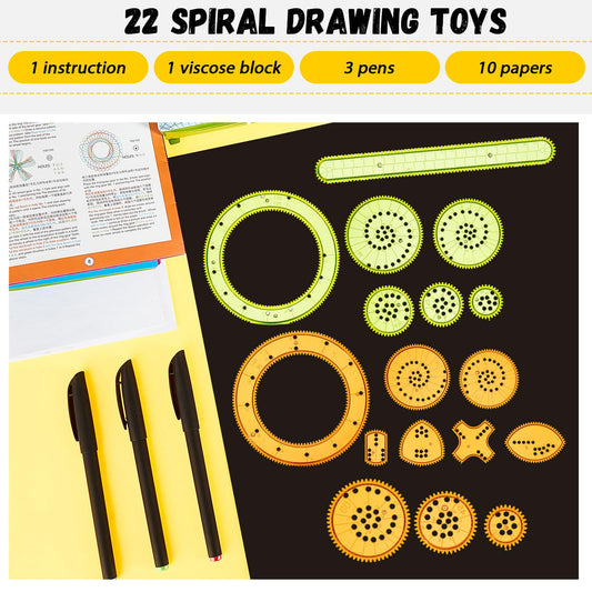 Chivao Spiral Art Gear Geometric Ruler Spiral Circle Template for Drawing Plastic Template Ruler Drawing Toys Spiral Curve Stencils with Pens Paper for Drawing DIY Art Crafts Sketch (Classic)