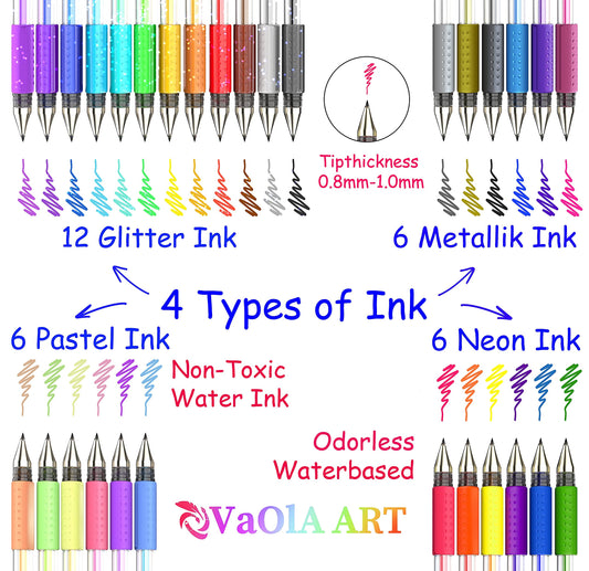 VaOlA ART Colored Pens 30 Psc Glitter Gel Pens for Kids Colorful Pens for Spirograph Deluxe Design Set